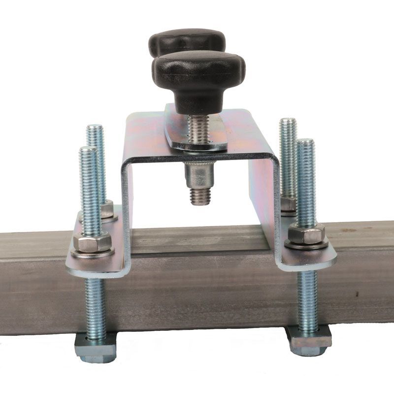 - Matière : acier zingué - Dimensions : 150x135x98 mm - Adaptable sur tube : maximum 60mm x 80mm - Entraxe vis de serrage roue 100 mm - Livré sans cadenas