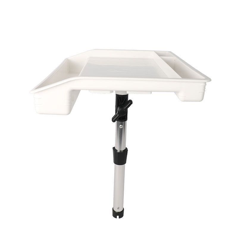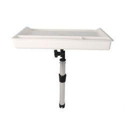 La crosse s'adapte à tous les porte-cannes encastrables du marché, ( 90°,15°,30°) elle se compose d'une bague de blocage réglable et d'un cardent à son extrémité pour un maintien optimal dans le porte-canne. La jonction entre la tablette et la crosse est réglable pour un positionnement horizontal de la tablette quelque soit l'inclinaison du porte-canne dans lequel elle est posée. Ce réglage permet également un rangement facile de la tablette hors utilisation.