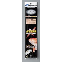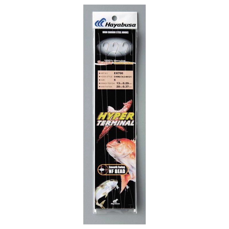 Montage EX700 HAYABUSA montage avec 3 empiles équipées d'hameçons CHN121 renversés sur perles rotatives. Le top pour les pêches aux appats à soutenir des daurades grises, grisets, daurade royales, merlans, maquereaux et autres poissons de roches. - Longueur 1.20 mètre - Empile 10 cm. - Hameçon nickel - fluorocarbone seaguar
