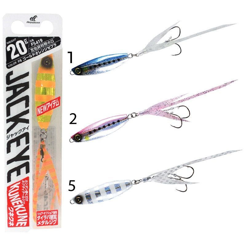 Le Jack Eye Kunekune FS419 de Hayabusa est un casting jig compact au profil de slow jig, conçu pour séduire une grande variété de prédateurs marins. Son design asymétrique, avec un côté plat et un côté bombé, génère une nage papillonnante irrégulière, alternant d'un flanc à l'autre pour imiter un poissonnet blessé. Il se lance facilement et reste performant même face au vent.
