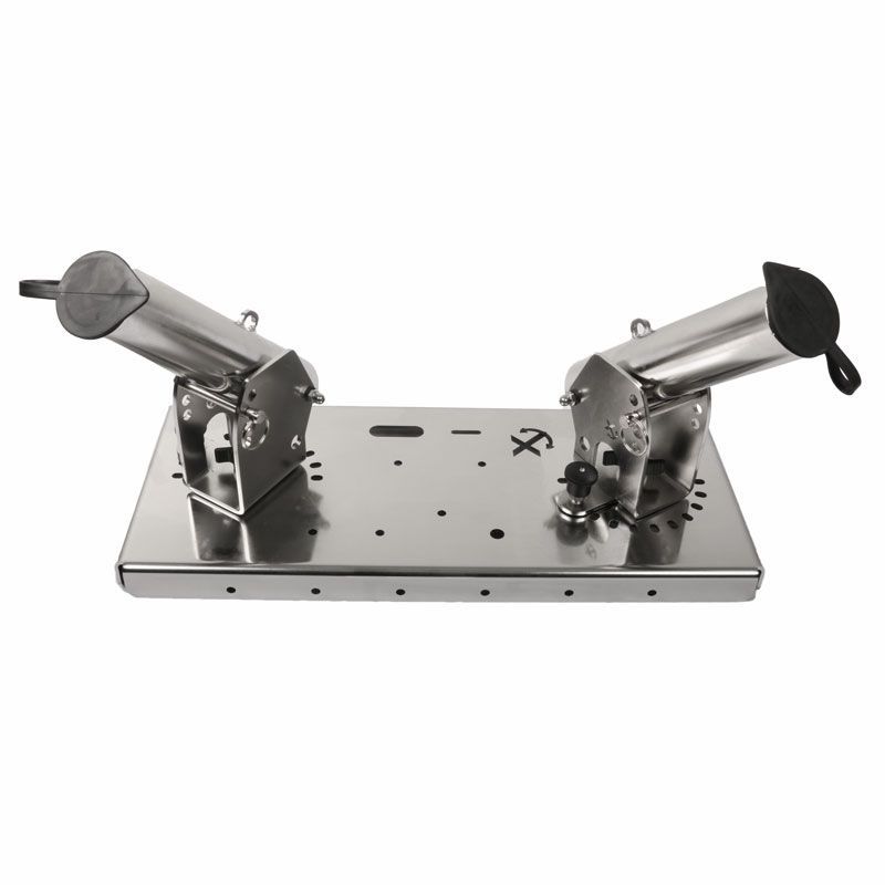 Les porte-cannes sont munis d'anneaux de sécurité et offre 5 réglages d'inclinaison (25/35/45/55/90° pour crosse de canne coudée) ainsi que 13 réglages horizontaux sur une plage de 180°, avec un buté de Ø6mm pour cardan.
