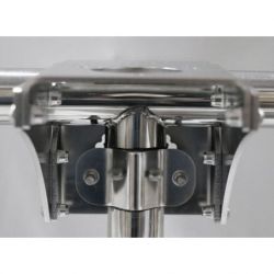 Fabriqué en France dans les ateliers Amiaud, ce support garantit une solidité exceptionnelle et une fixation fiable sur les T des mains courantes ayant un diamètre compris entre 20 et 40 mm et des angles entre 45° et 90°, grâce à sa bride réglable.