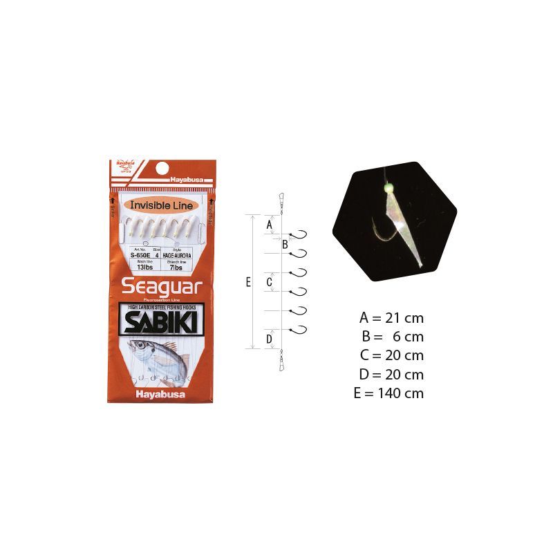 Le Sabiki S650E HAYABUSA est équipé de 6 hameçons dorés réf:H.MRS