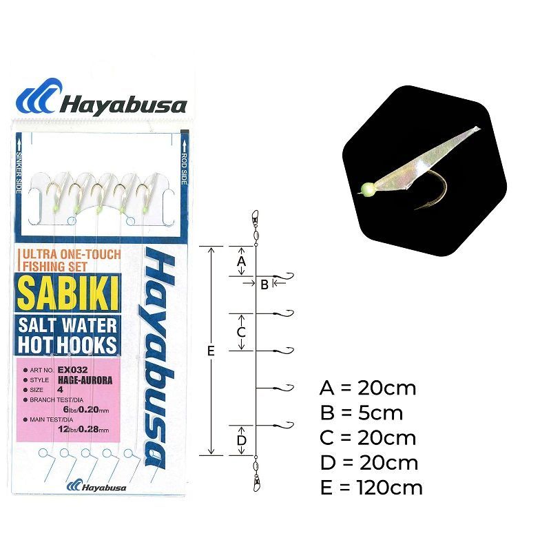 Le Sabiki EX032 HAYABUSA est équipé de 5 hameçons dorés réf:H.MRS171 GOLD.