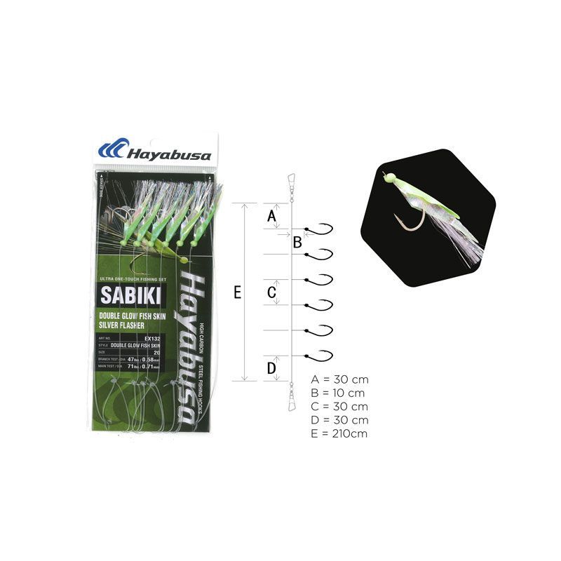 Le Sabiki EX132 HAYABUSA est équipé de 6 hameçons réf:H.MRS 171 Nickel.