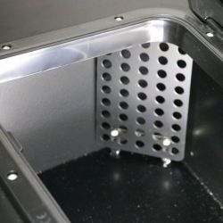 Les angles intérieurs du vivier sont spécialement conçus avec des plaques alvéolées pour garantir la bonne circulation des poissons.